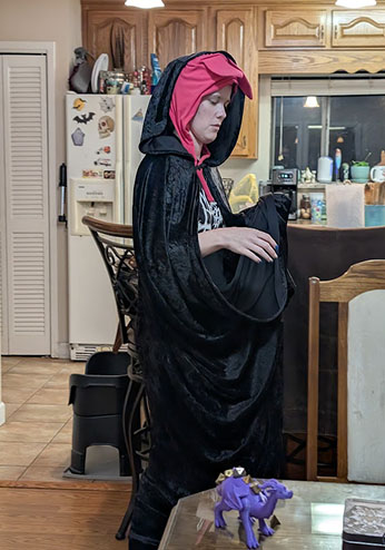 Beth is an excellent bunny and is always mysterious in her cloak.